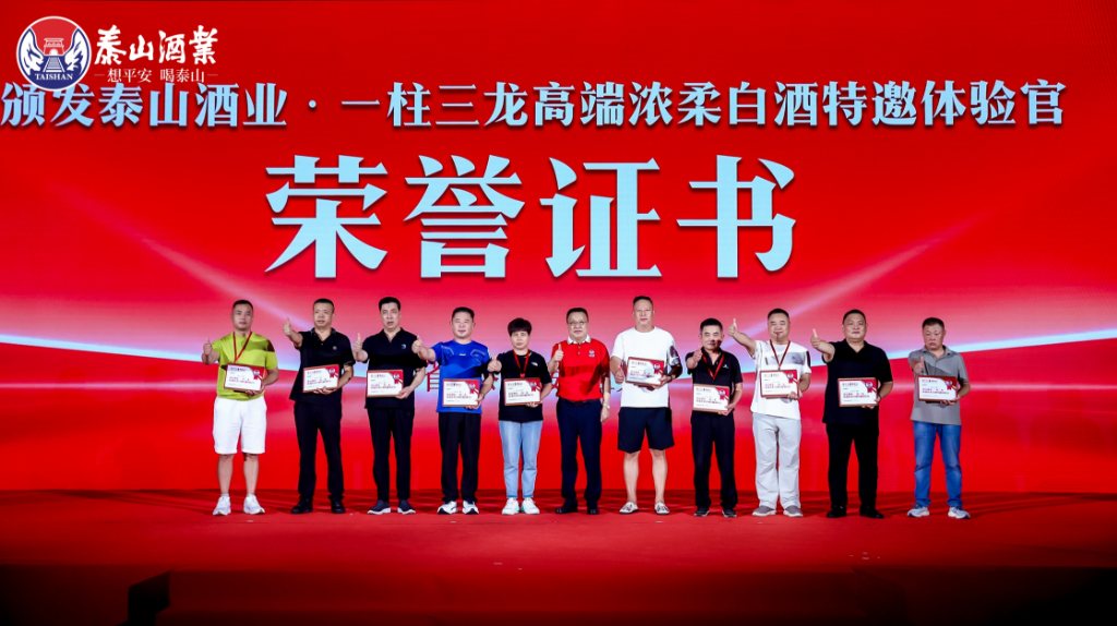 活動尾聲以編鐘雅樂營造秦風(fēng)古韻,融入泰山平安文化,呈現(xiàn)出一場高端濃柔白酒的沉浸品鑒盛宴。吳修剛副總經(jīng)理現(xiàn)場演示“五步品鑒法”,引導(dǎo)嘉賓細賞泰酒“高而不烈、低而不寡、香味協(xié)調(diào)、醇厚豐滿、綿柔舒適”的典型風(fēng)格。十位嘉賓獲聘“一柱三龍高端濃柔體驗官”,并一致贊譽泰酒“真香、真柔、真順滑、不刺喉”。全場祈福儀式將平安祝愿推向高潮,深刻傳遞了泰山酒業(yè)的文化底蘊與品牌溫度。
